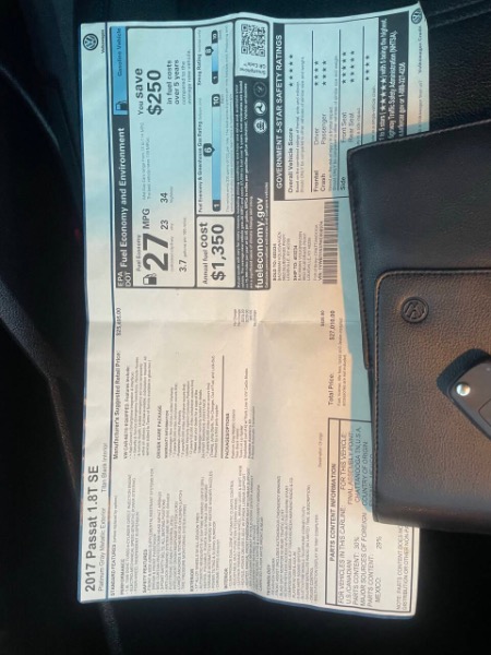 2017 Volkswagen Passat 1.8 T SE 4dr Sedan **one owner***clean and clear title ****clean carfax * must see to appreciate the quality like new fully loaded with all the optation and safety heated front a , , power moon roof /sun roof, dual zone-zone automatic climate control , power seat , ADAPTIVE CRUISE CONTROL (ACC) -FRONT ASSIST WI AUTONOMOUS EMERGENCY BRAKING ,BLIND SPOT MONITOR W/ REAR TRAFFIC ALERT, KEYLESS ACCESS W/ PUSH-BUTTON , App-Connect (Smartphone Integration Interface) - PARTIAL ZERO EMISSIONS VEHICLE (PZEV) -